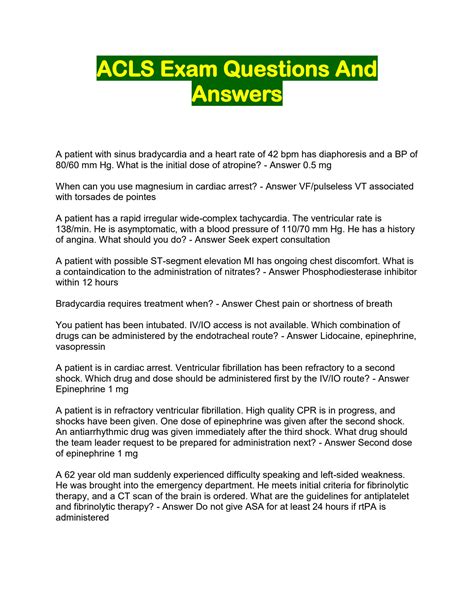 | File Name: Acls Exam Questions And Answers.pdf Size: 7592 KB Type: PDF, ePub, eBook |